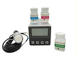 仪表与 pH(或 ORP)电极配套,实现对溶液酸碱度的 pH(或 ORP)值监测,传感器是由 pH(或 ORP)玻璃电极和甘汞(或 Ag/AgCl)参比电极组成的电池,依据能斯特方程产生与溶液 pH 值相关的电位差:Ex=Eo+SpH。该电位差经具有高输入阻抗的前置放大器放大,热敏元件送出对应温度值的信号,两组信号被放大后经 A/D 转换,通过 I/O 接口芯片,经单片微处理器运算后在显示屏上醒目显示。